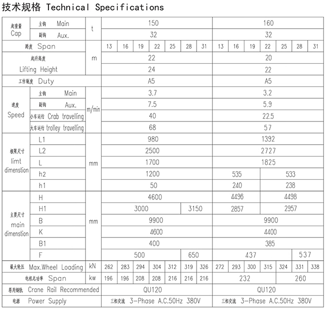 QD型125、32t~160、32t吊钩桥式起重机