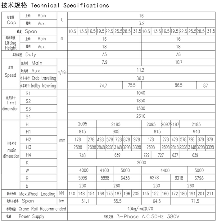 QD型16、3.2t吊钩桥式起重机
