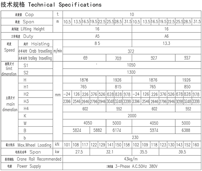 QD型10t吊钩桥式起重机